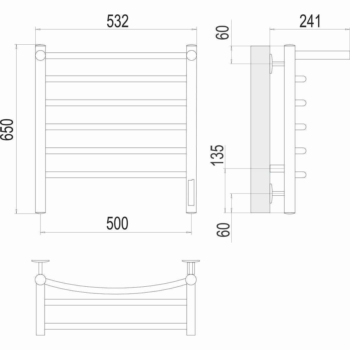 Купить Полотенцесушитель электрич. "Классик" П6 500*650 С перекладиной (хром) (1) "TERMINUS"