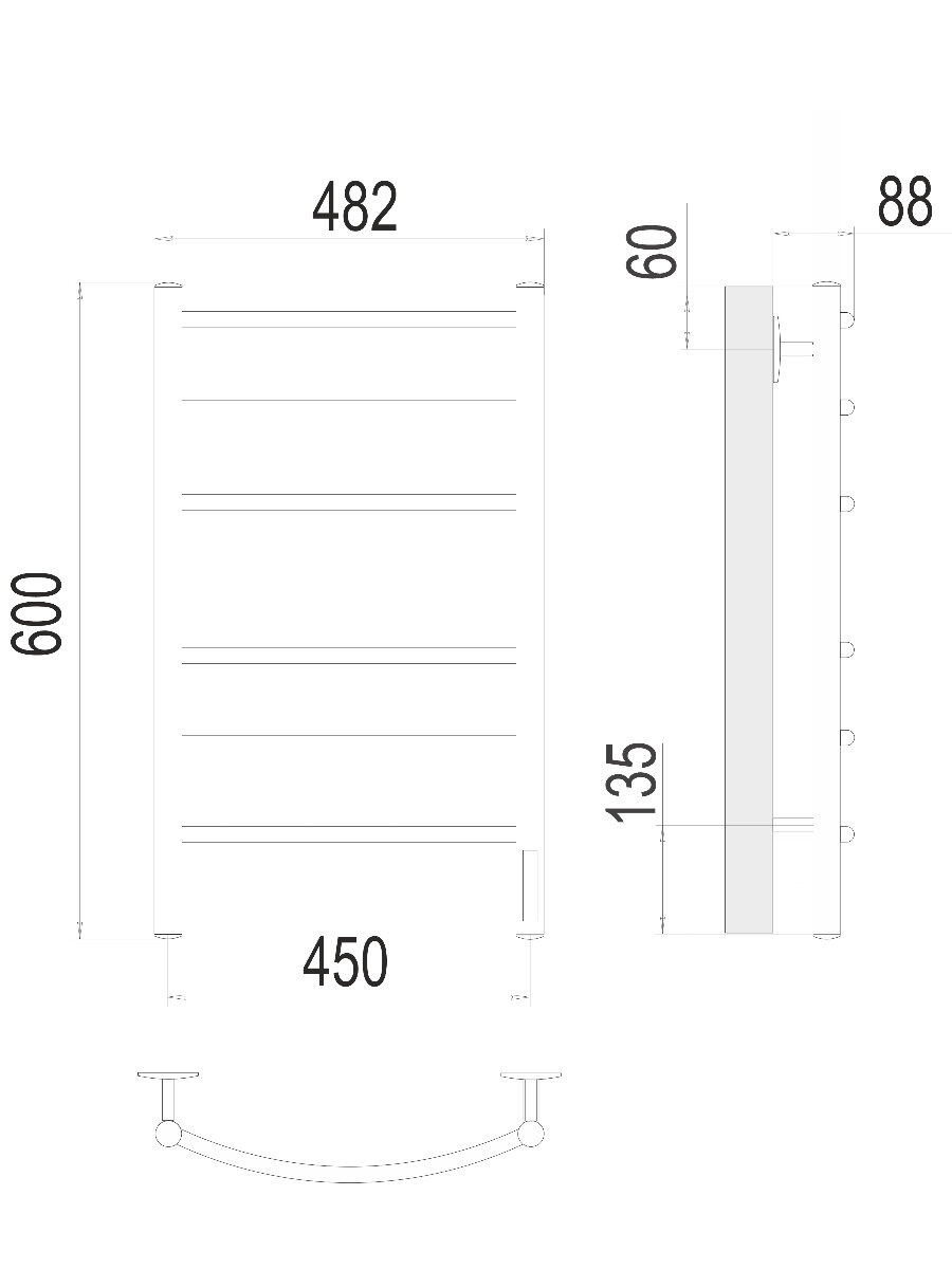 КС Классик quick touch (белый) электрический полотенцесушитель TERMINUS (482 мм / 600 мм / 450 мм)