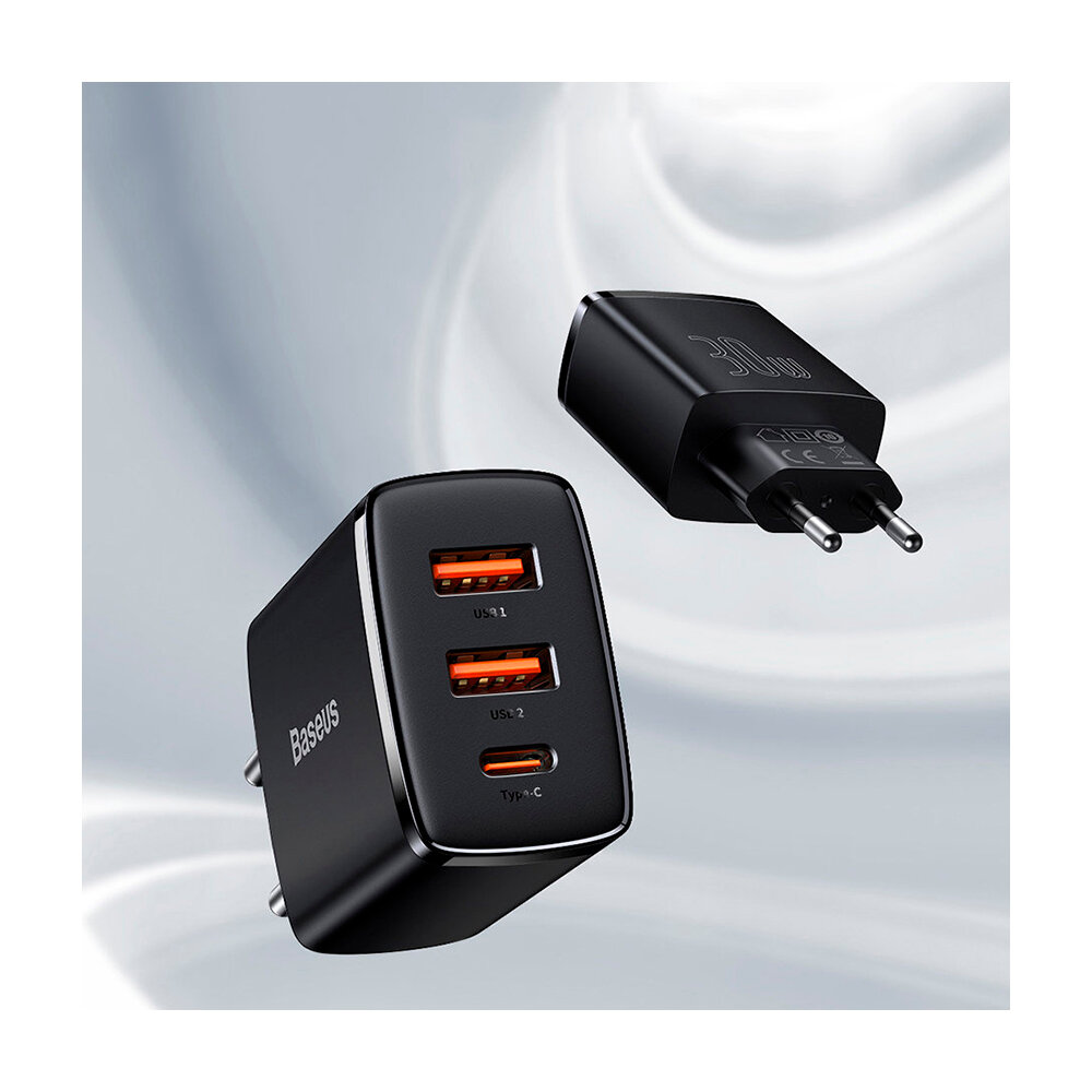 СохранитьЗарядное устройство Baseus Compact Quick Charger 2*USB+USB-C, 3A, 30W, черный интересное: