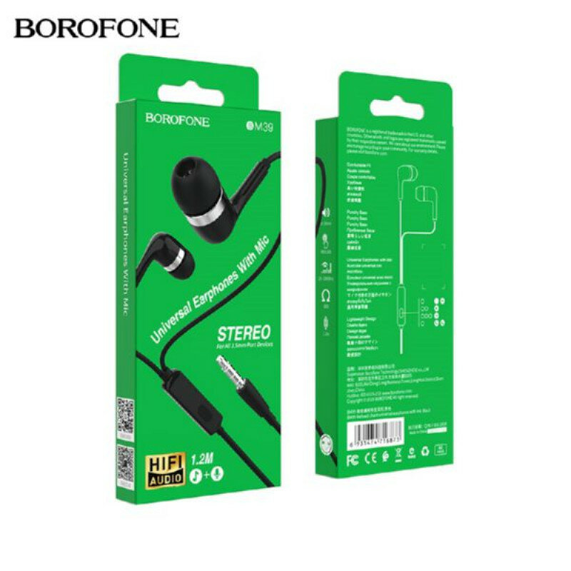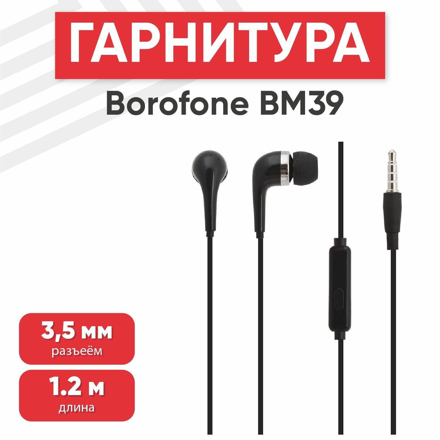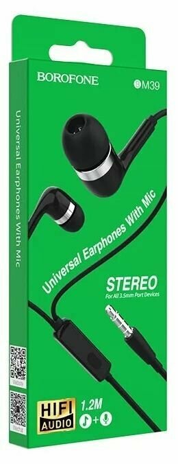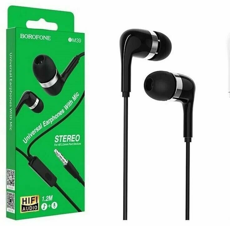 Гарнитура BOROFONE BM39 Refined Chant 3.5 мм, вставная, 1.2м (черный)