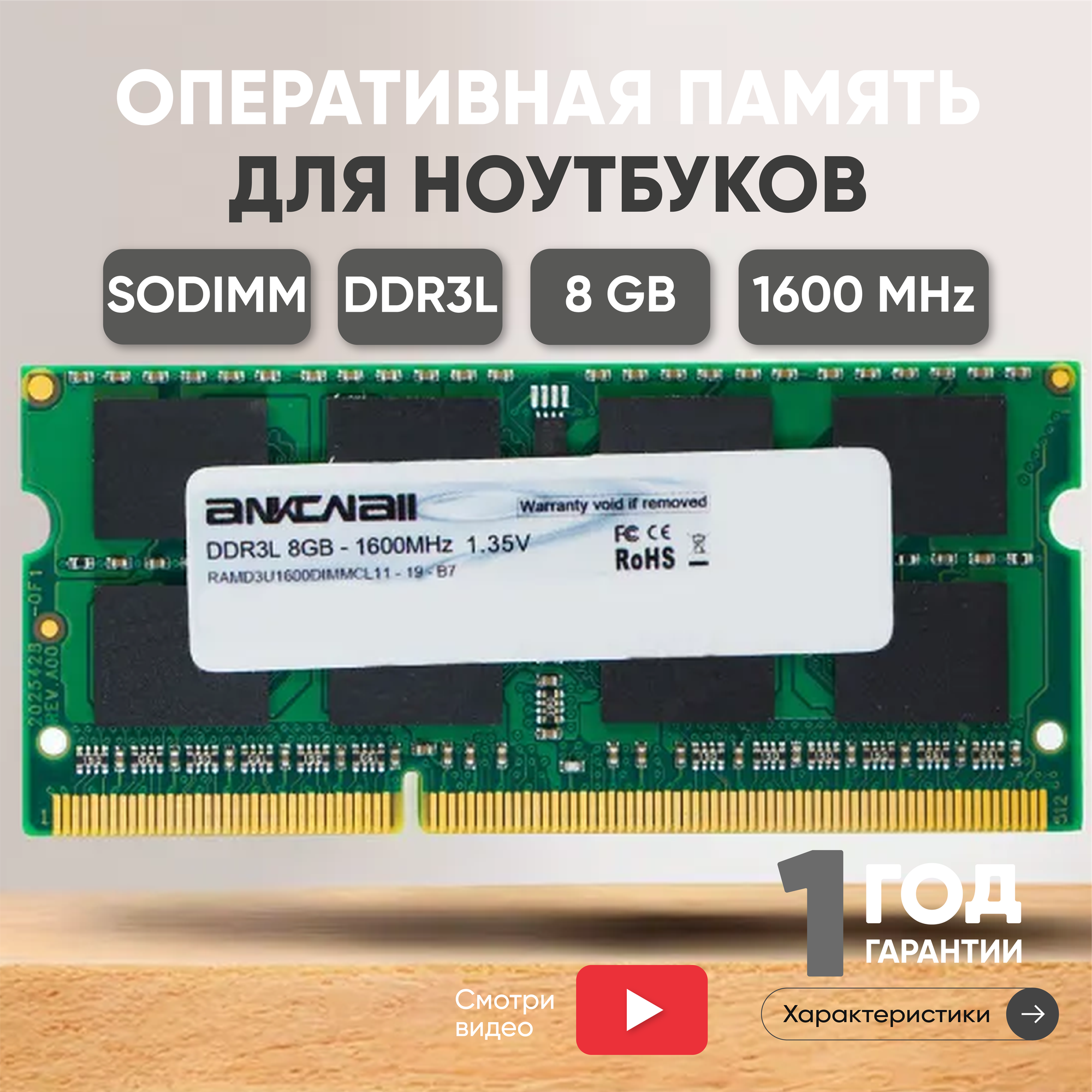 Модуль памяти Ankowall SODIMM DDR3L, 8ГБ, 1600МГц, 1.35В, PC3-12800, CL11 11-11-11-28 интересное: