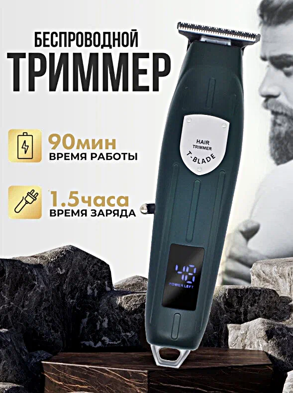 Беспроводной триммер мужской, машинка для стрижки волос для мужчин,бороды и усов/домашняя/уход за волосами/с дисплеем/для дома/зеленый