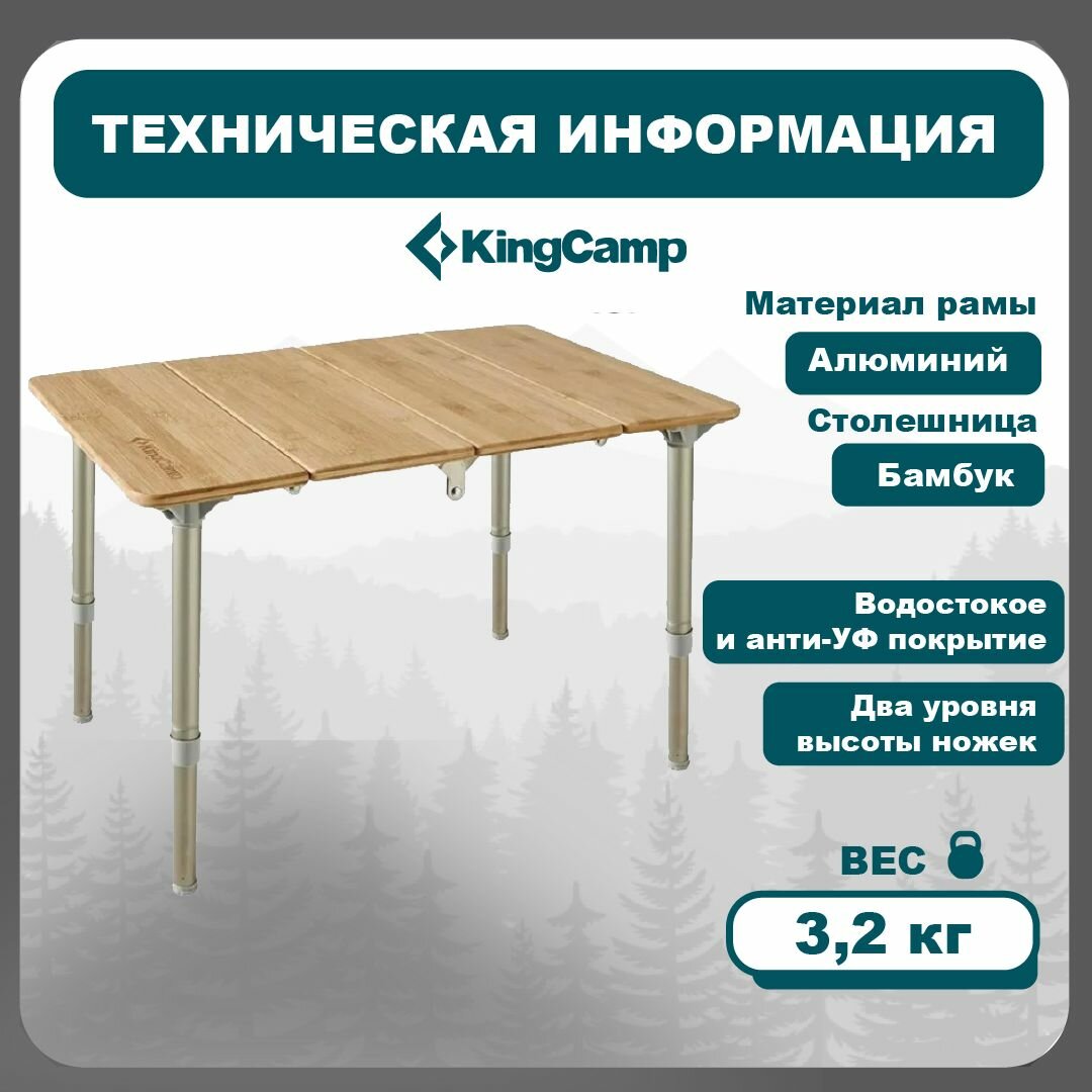 Стол туристический складной KingCamp KC1913 4-Folding Bamboo Table 60х40х40 см интересное: