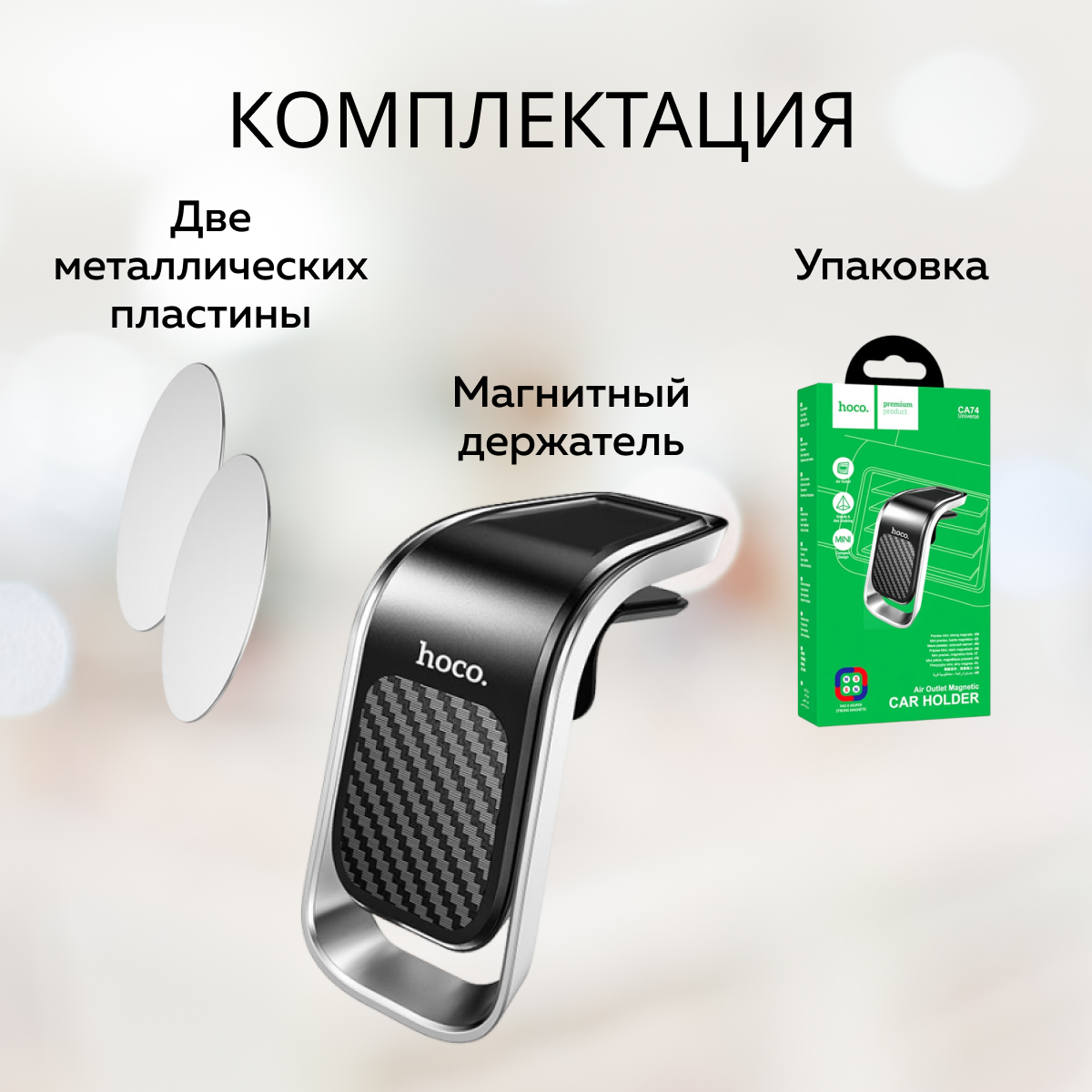 Автомобильный держатель Hoco CA74 (магнитный / в дефлектор) черный с серебром