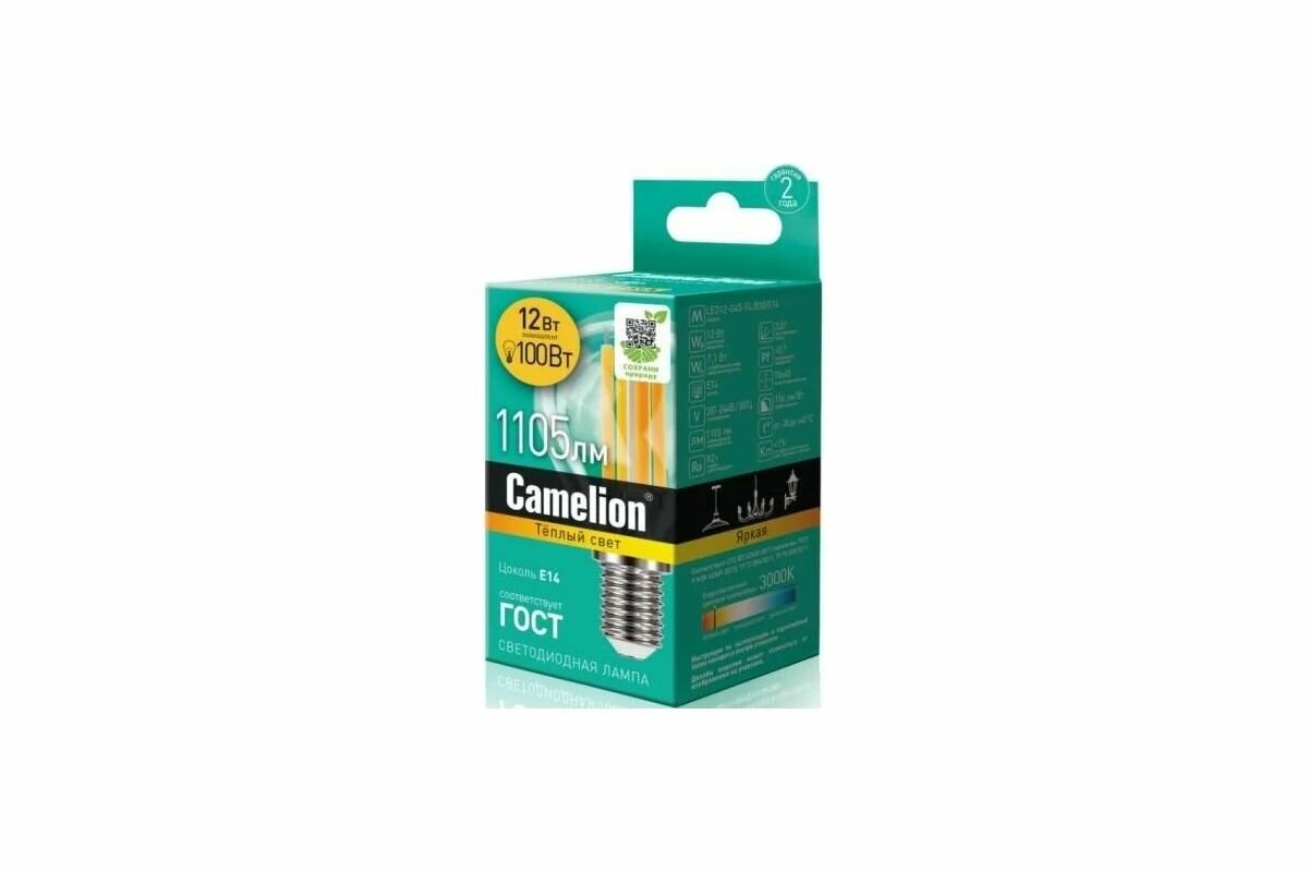 Лампа светодиодная Camelion 13693, E14, G45, 12 Вт, 3000 К