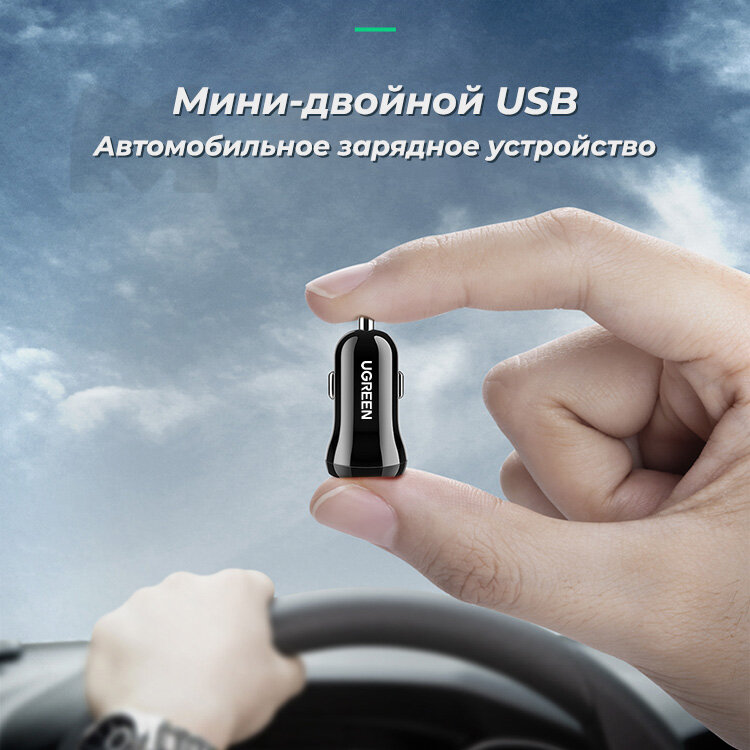 Автомобильное зарядное устройство Ugreen ed018 (50875) dual usb car charger с двумя разъемами usb-a, черный 50875_
