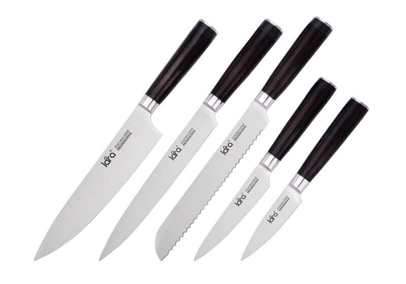 Набор ножей с подставкой LARA LR05-58, 5 предметов в комплекте, нержавеющая сталь, рукоятка Дерево, Сталь