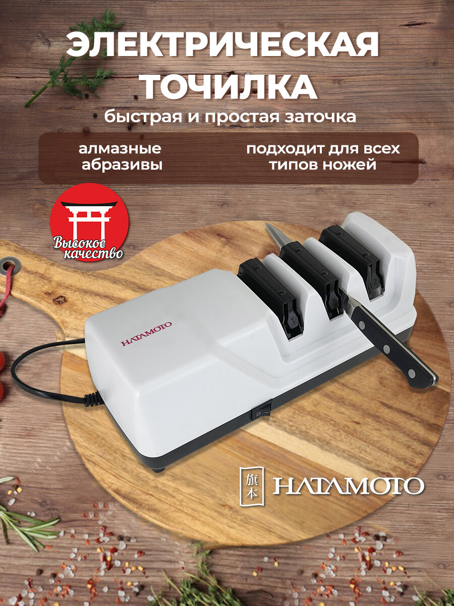 Электрическая точилка для ножей Hatamoto EDS-1198 с алмазной трехэтапной заточкой, правка, заточка, доводка
