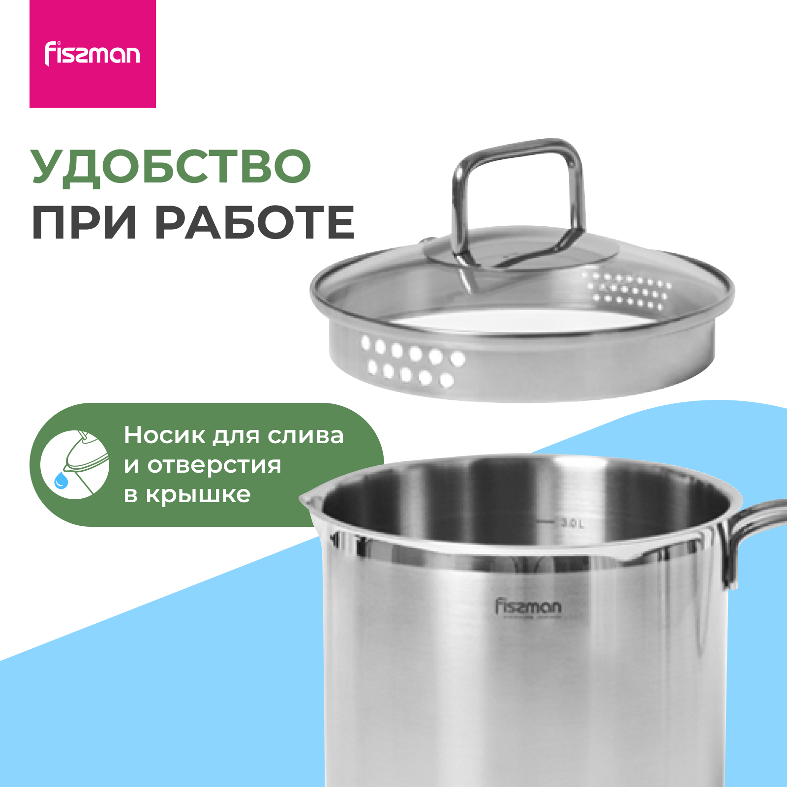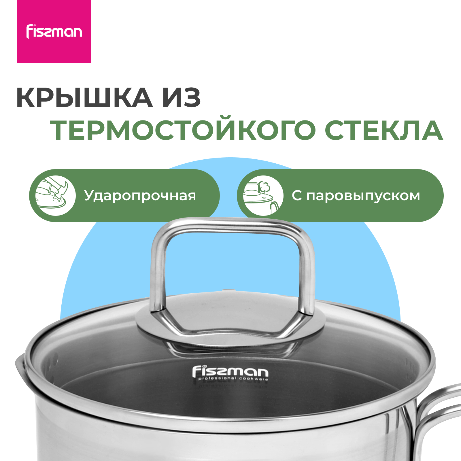 Купить 5099 FISSMAN Кастрюля ASPARAGUS для варки овощей 16x18см / 3,5л с крышкой (нерж.сталь) Вставка-пароварка с ручкой-нерж.сталь; Крышка-стекло; Индукция; Термоаккумулирующее многослойное дно