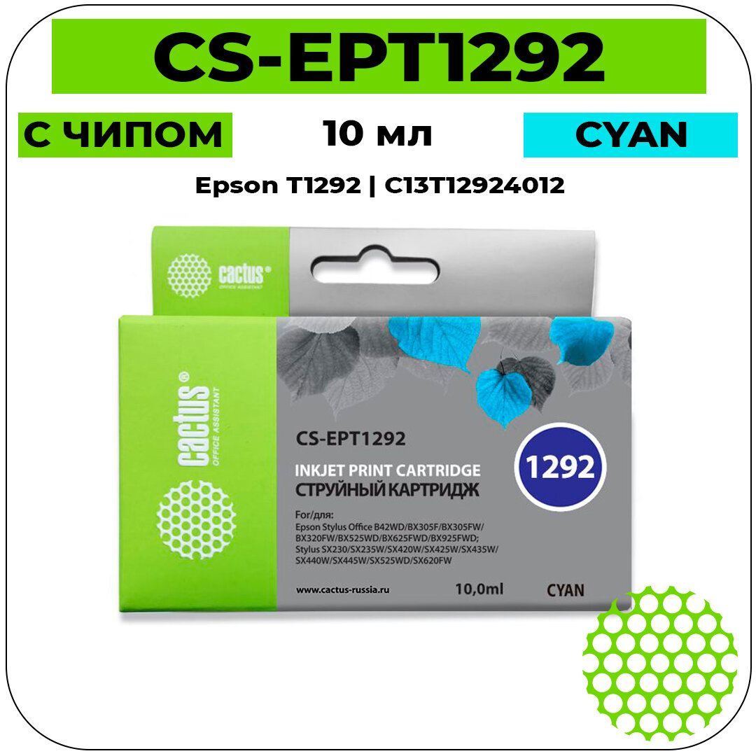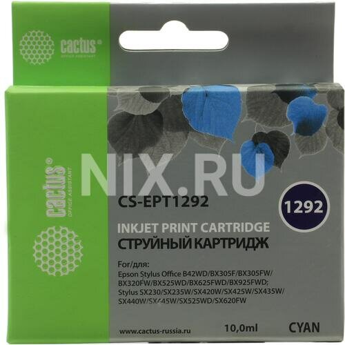 Картридж струйный Cactus CS-EPT1292 голубой для Epson B42/BX305/BX305F/BX320/BX525/BX625/SX420/SX425/SX525/SX621 (10мл) CS-EPT1292