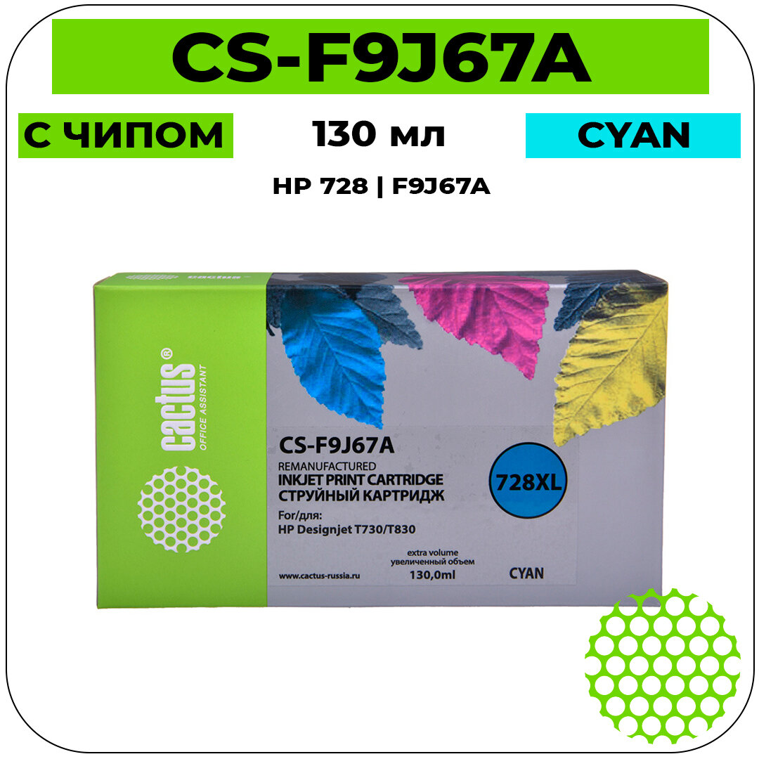 Картридж струйный Cactus 728XL Cs-f9j67a голубой (130мл) для HP DJ T730/T830 Cs-f9j67a .