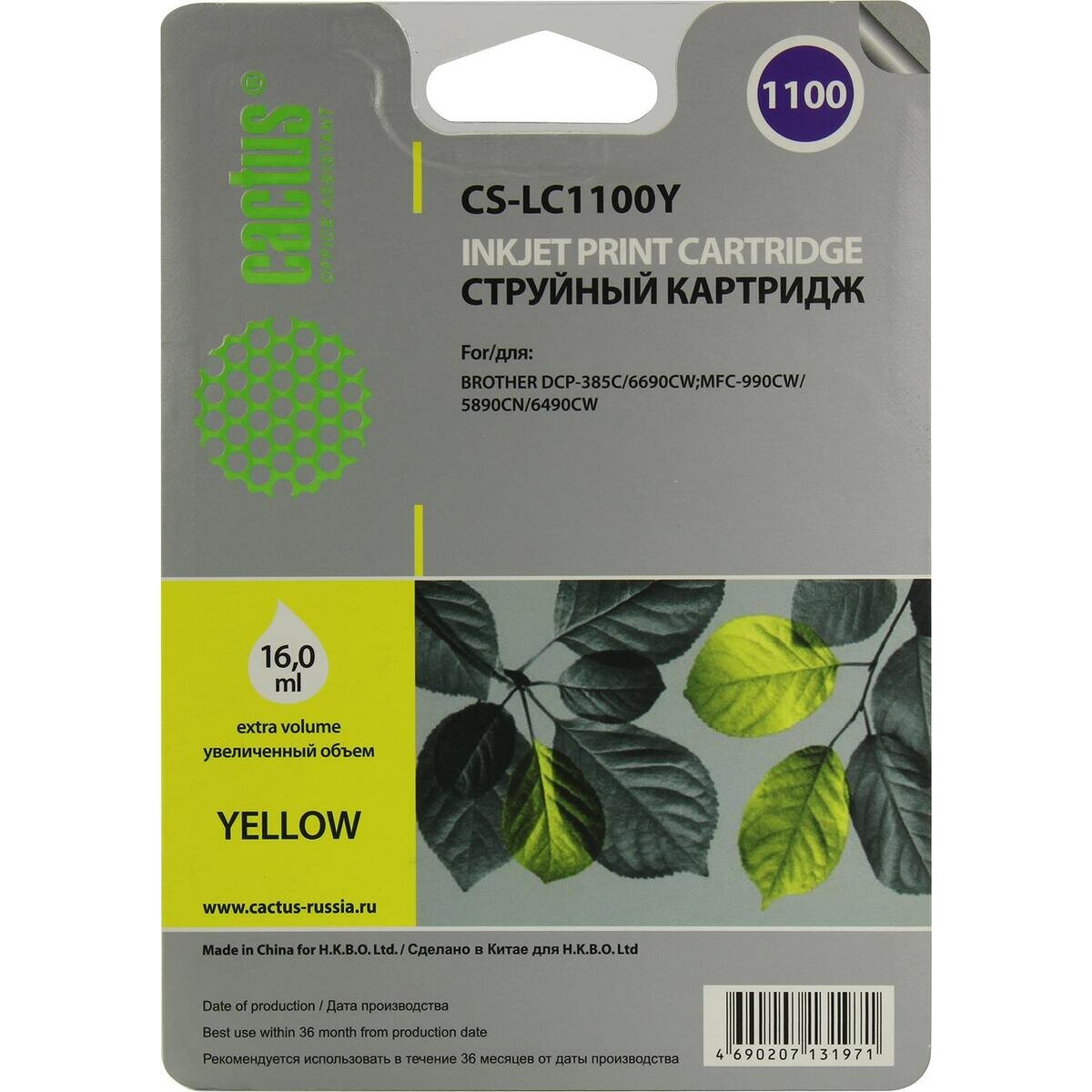 Cactus Картридж струйный CS-LC1100Y желтый 16мл для Brother DCP-385c 6690cw MFC-990 5890 5895 6490