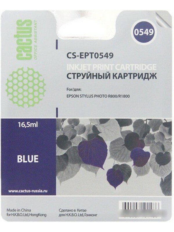 Картридж струйный Cactus CS-EPT0549 синий для Epson Stylus Photo R800/R1800 (16.2мл) CS-EPT0549