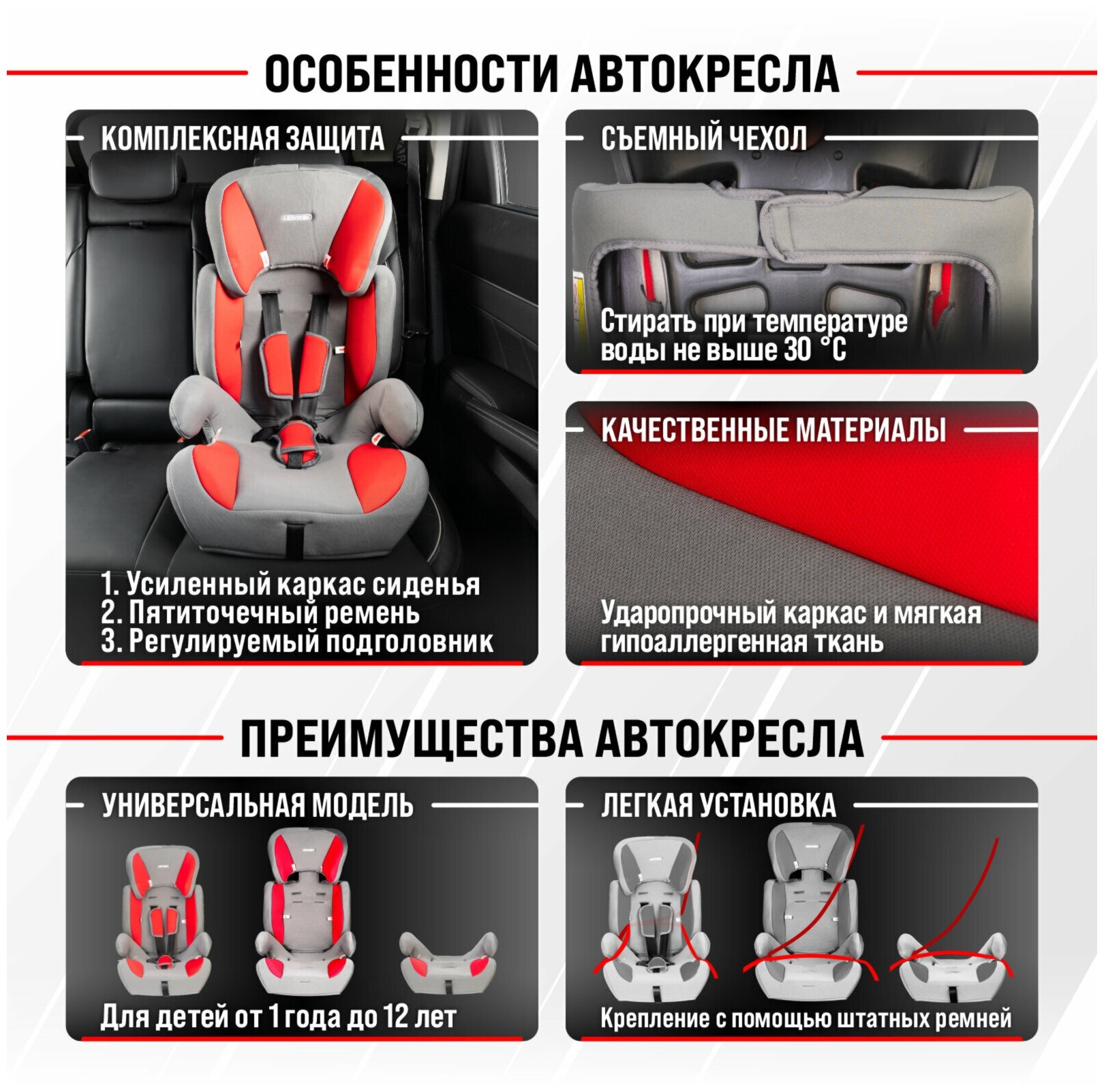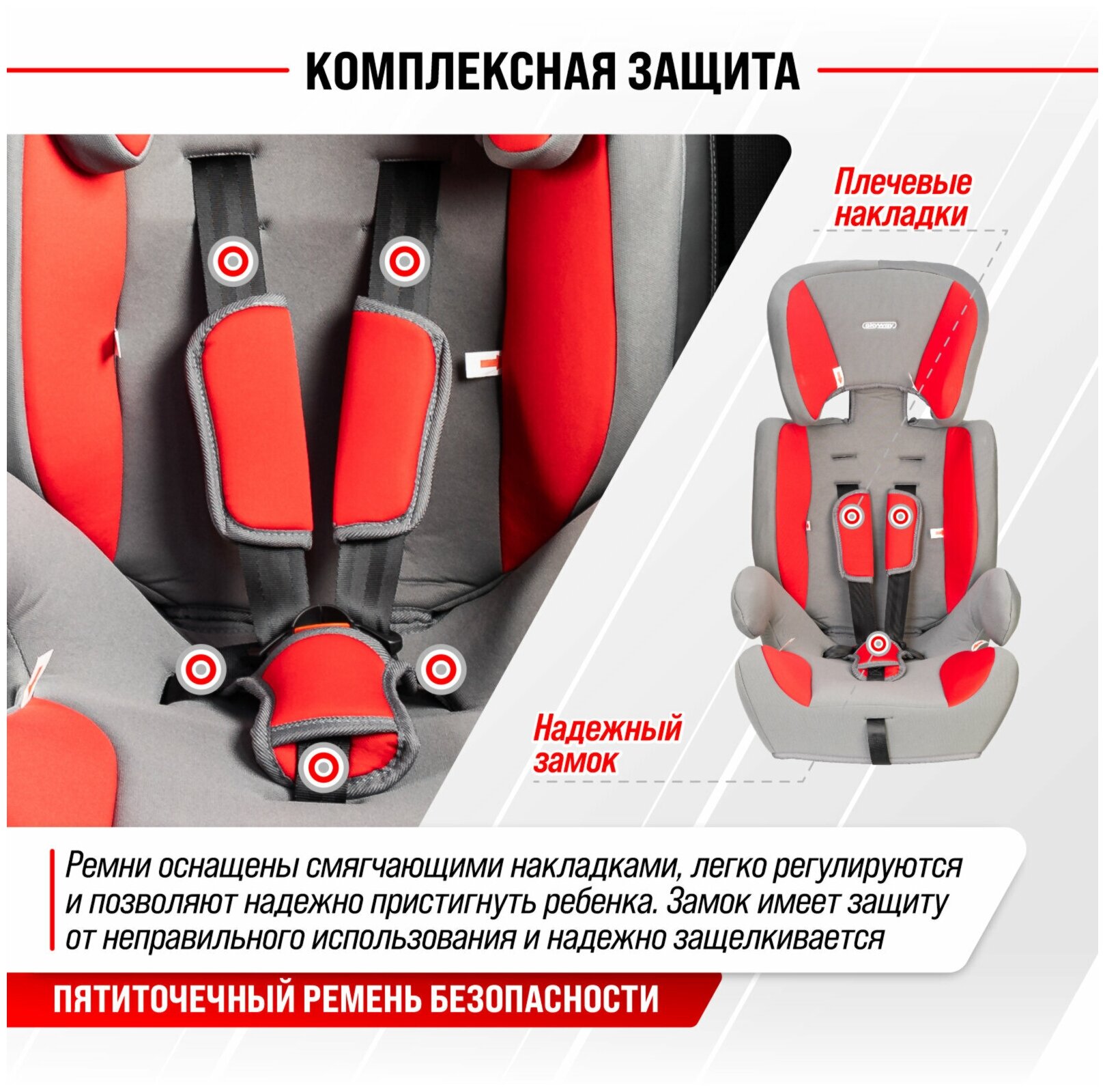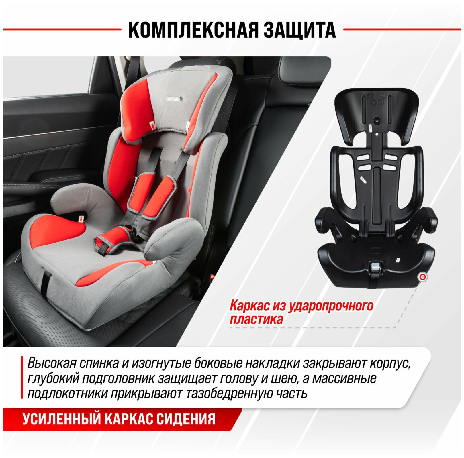 Автокресло детское 1/2/3гр SKYWAY Шалун (9-36кг/ 1-12лет) Серо/Красное, S02801026 интересное: