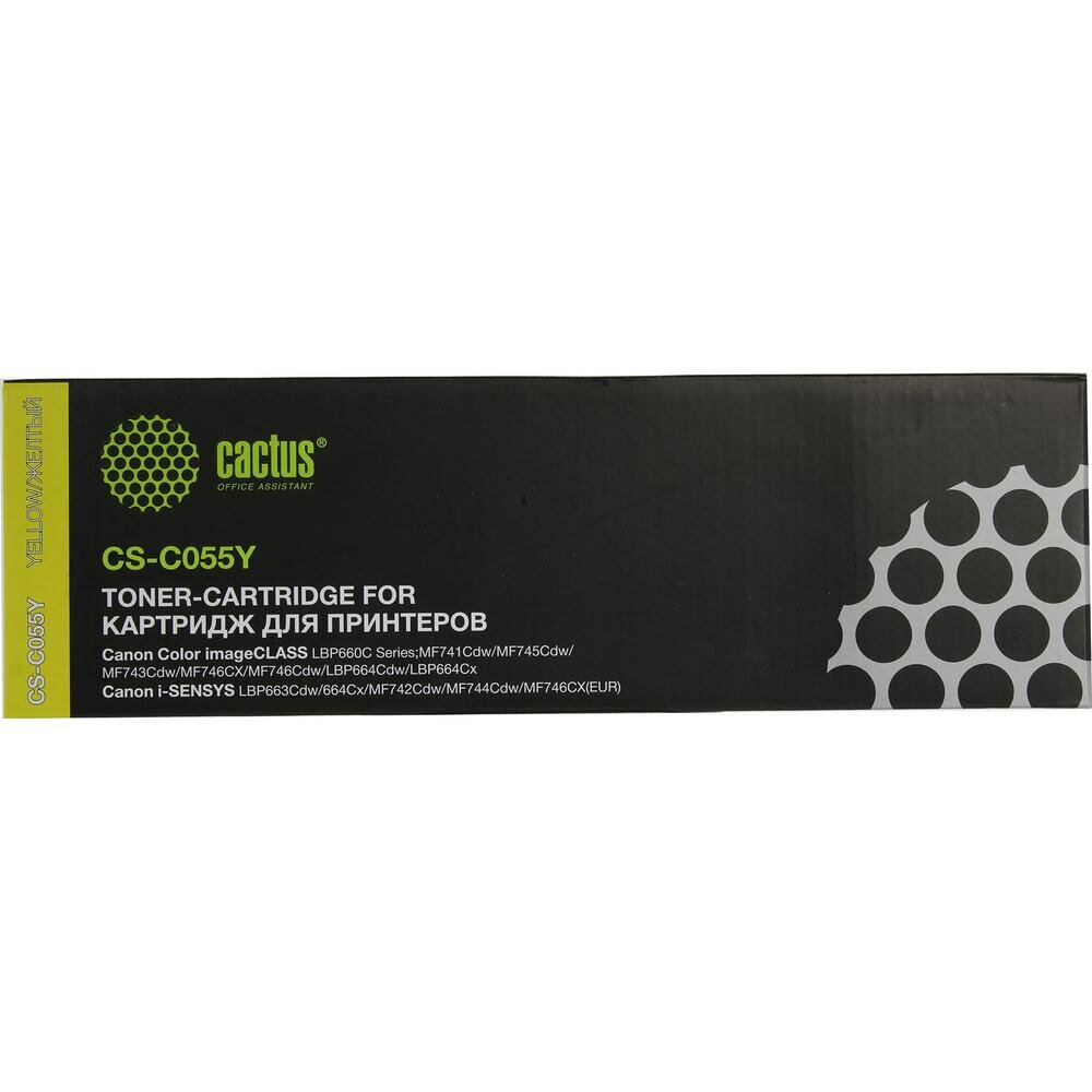 Купить Картридж лазерный CACTUS (CS-C055Y) для Canon LBP663Cdw/664Cx/MF746Cx/742Cdw, желтый, ресурс 2100стр
