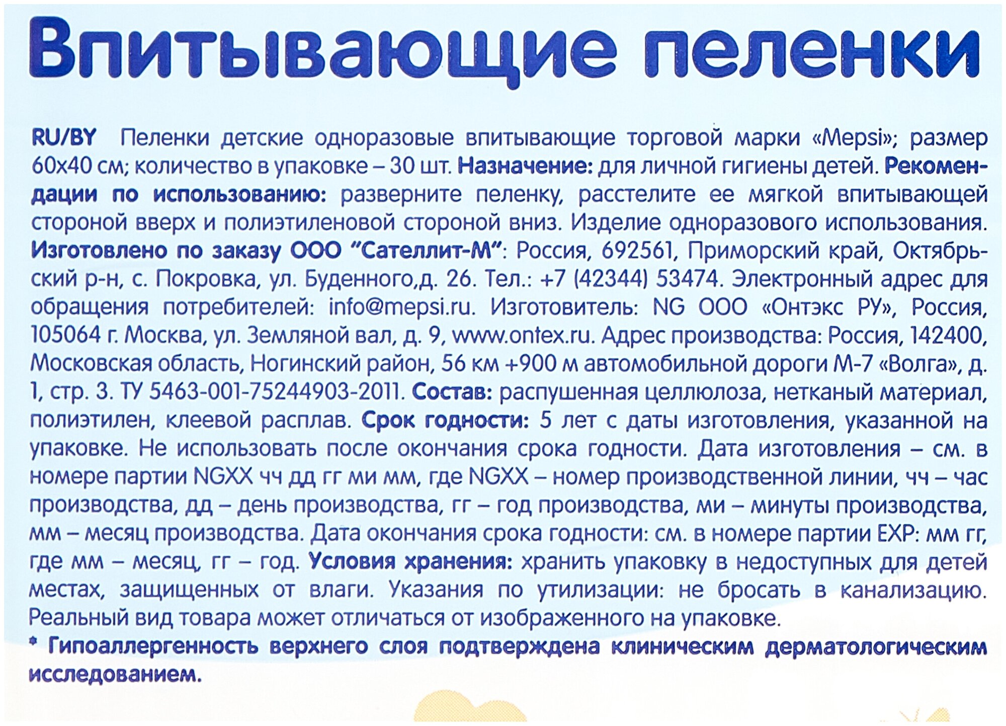 | Тип | пеленки |