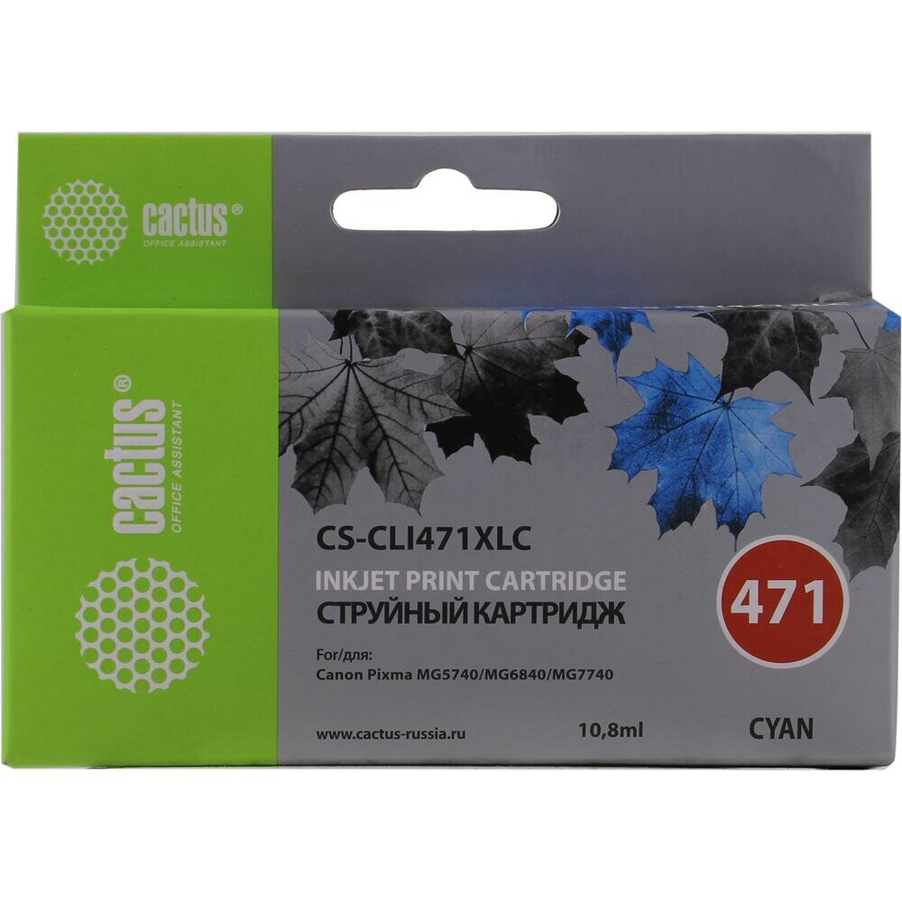 Картридж струйный Cactus CS-CLI471XLC CLI-471XL C голубой (10.8мл) для Canon TS5040/MG5740/MG6840/MG7740