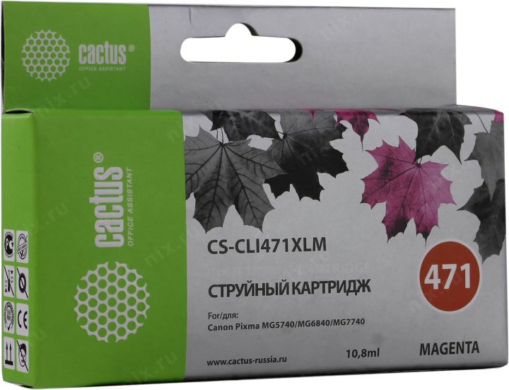 Картридж Cactus Cs-cli471xlm 10ML Magenta TS5040/MG5740/MG6840/MG7740 .