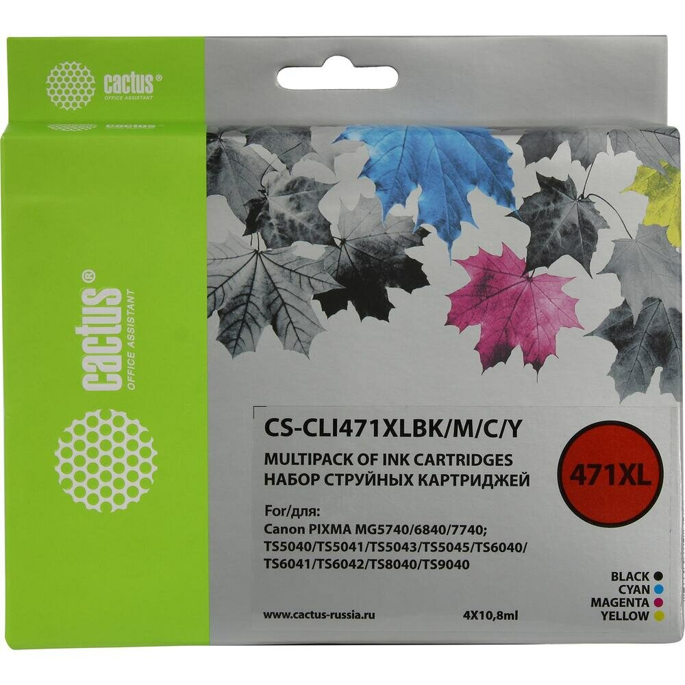 Купить Картридж струйный CACTUS (CS-CLI471XLBK/M/C/Y) для Canon TS5040/MG5740/MG6840/MG7740, цветной, CS-CLI471XLBMCY
