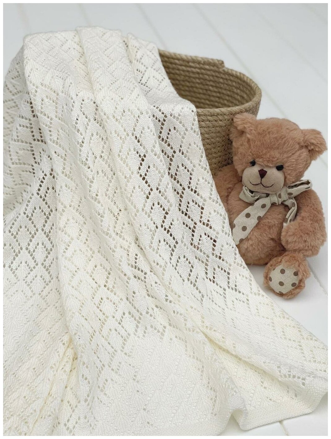 LEO, Плед "Фриволите" 90*90, 1671, молочный, вязанное полотно интересное: