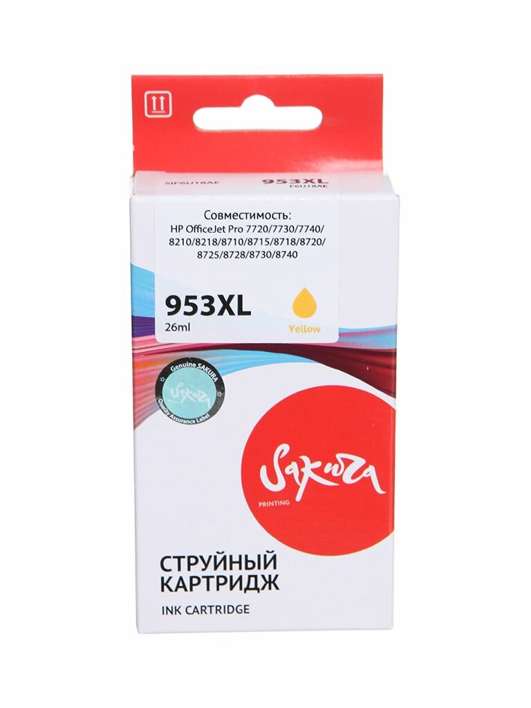 Струйный картридж Sakura Printing Sakura F6U18AE (№953XL Yellow) для HP, желтый, 26 мл., 1600 к.