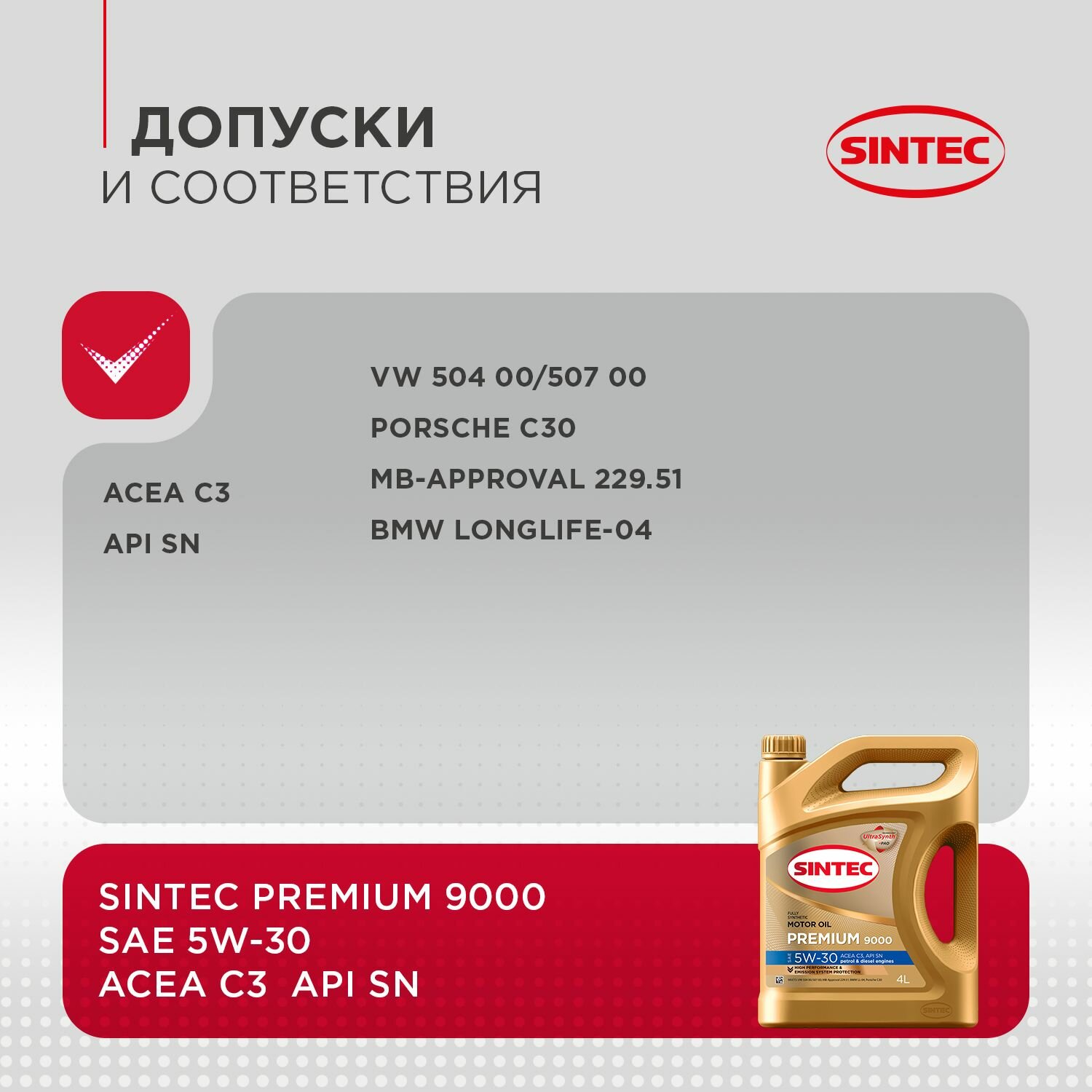 Sintec PREMIUM 9000 SAE 5W-30 API SN ACEA C3 4л синтетика (600131)