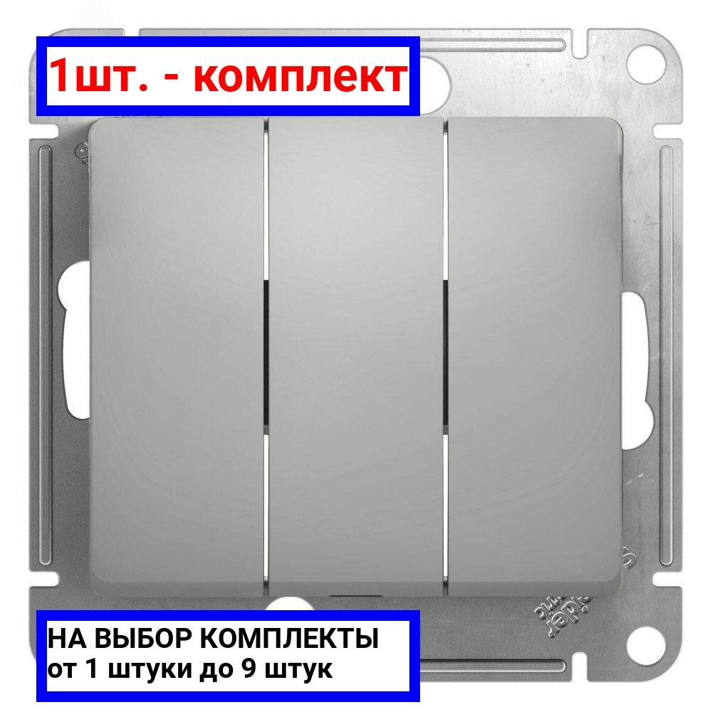 3шт. - GLOSSA Выключатель трехклавишный в рамку алюминий схема 3 / Systeme Electric; арт. GSL000331; оригинал / - комплект 3шт