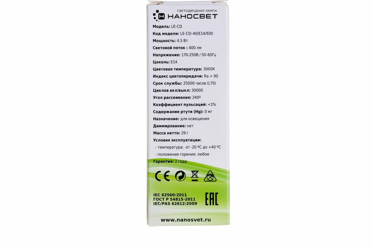 Светодиодная лампа Наносвет LE-CD-40/E14/930 интересное: