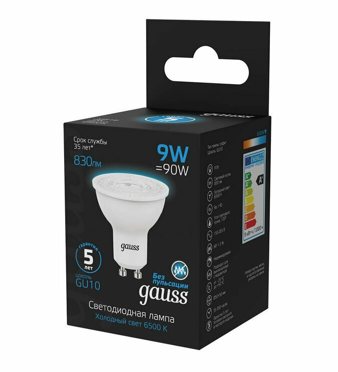 СохранитьЛампочка светодиодная MR16 GU10 9W холодный белый свет 6500К упаковка 10 шт. Gauss интересное: