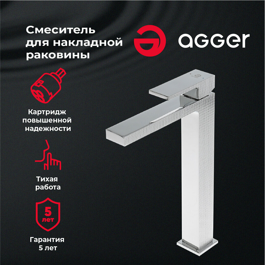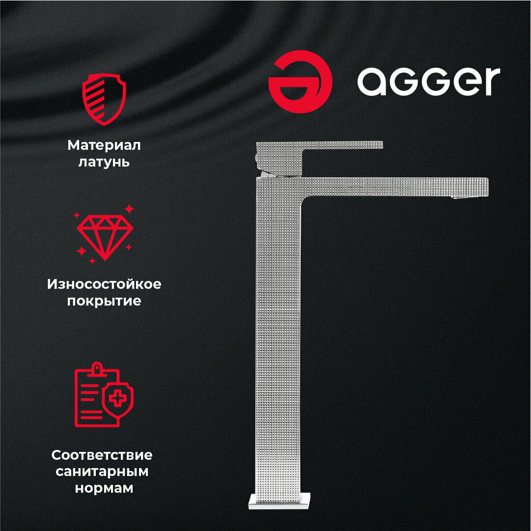 Смеситель для раковины, для накладной раковины, высокий Agger Great A2812144, черный