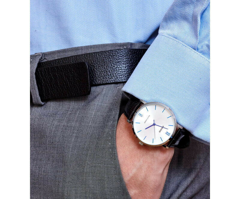 | Плюсы: | Цена, эффектное сочетание белого циферблата и темно синих меток и стрелок. Форма корпуса скрывает толщину, смотрится как элегантный слим. |