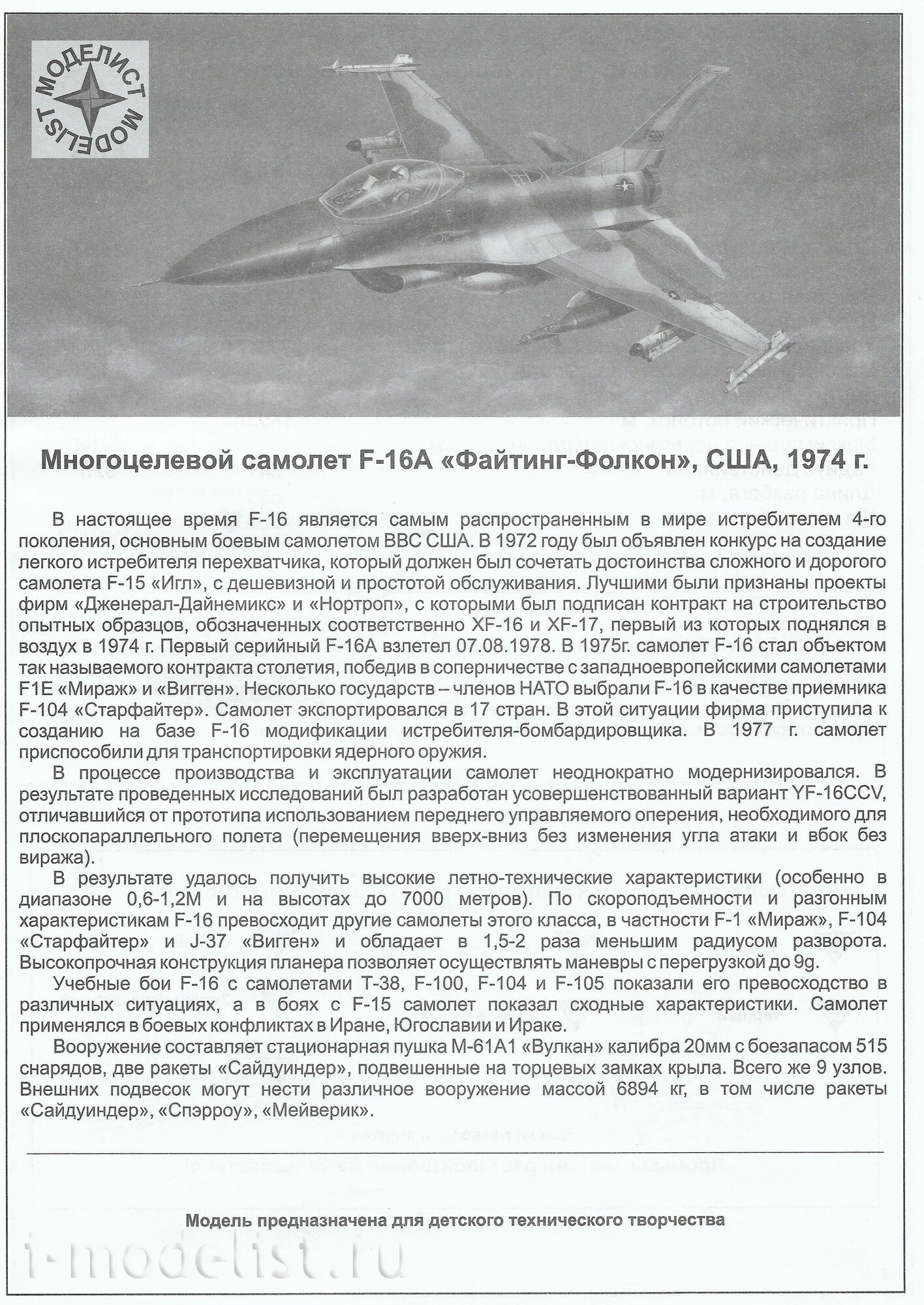 СохранитьМоделист 207202 Модель сборная Многоцелевой самолет F-16A Файтинг Фолкон 207202 1/72 интересное: