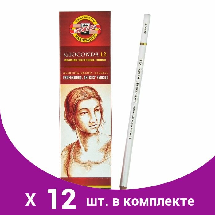 Купить Комплект 12 шт, Угольный карандаш Koh-I-Noor "Gioconda Extra 8812" H, белый, заточен