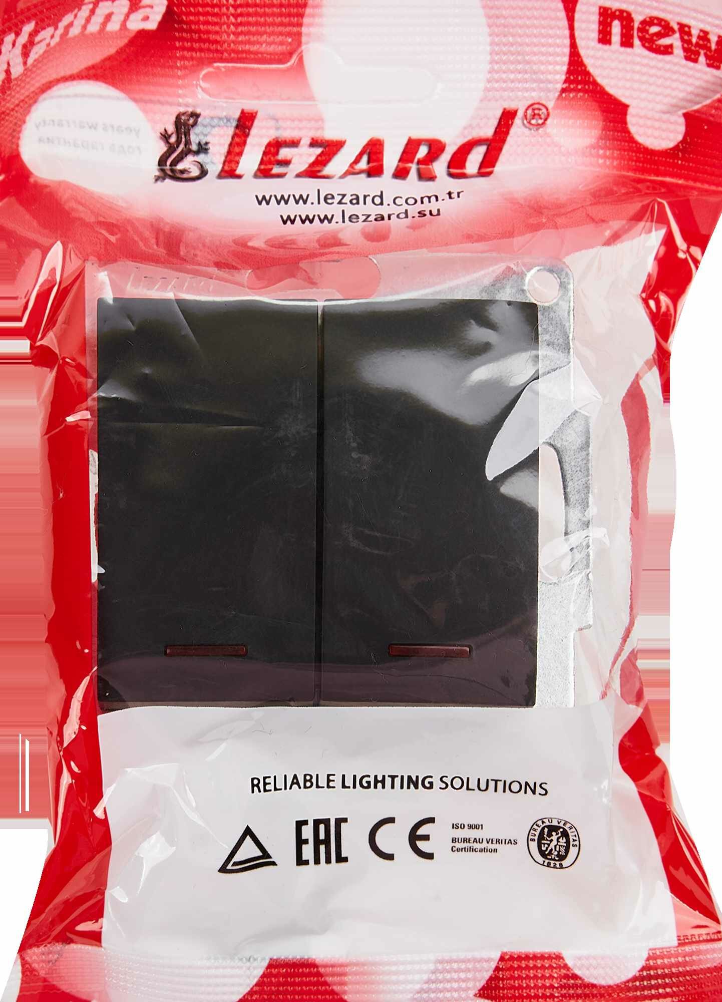 Выключатель 2-клавишный Lezard Karina, встраиваемый, с подсветкой, черный бархат