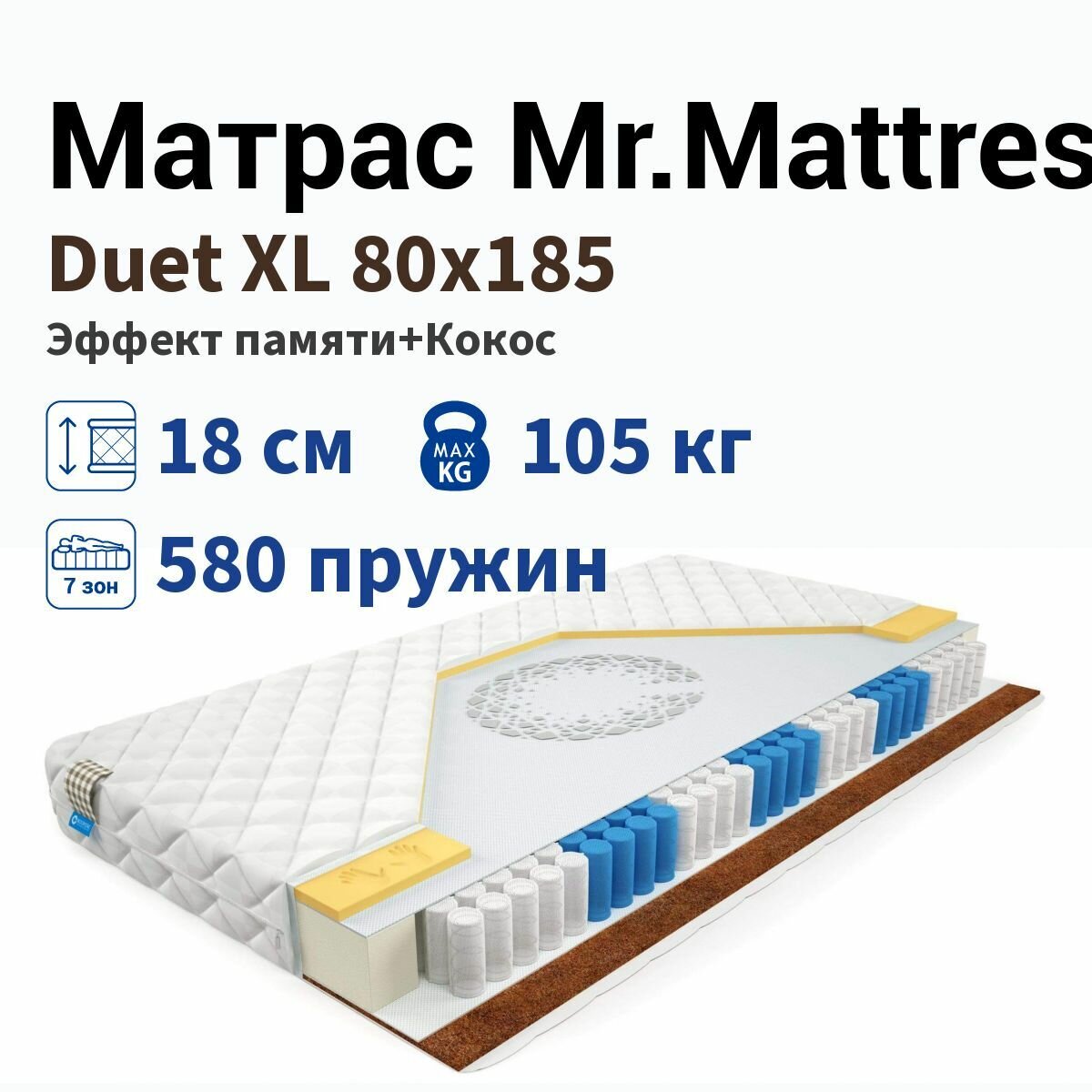 Матрас Mr.Mattress Duet XL, Размер 80х190 см