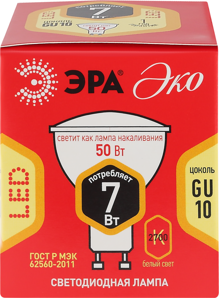 Лампа светодиодная ECO LED MR16-7W-827-GU10 (диод, софит, 7Вт, тепл, GU10) (101004000), ЭРА Б0040874 (1 шт.)