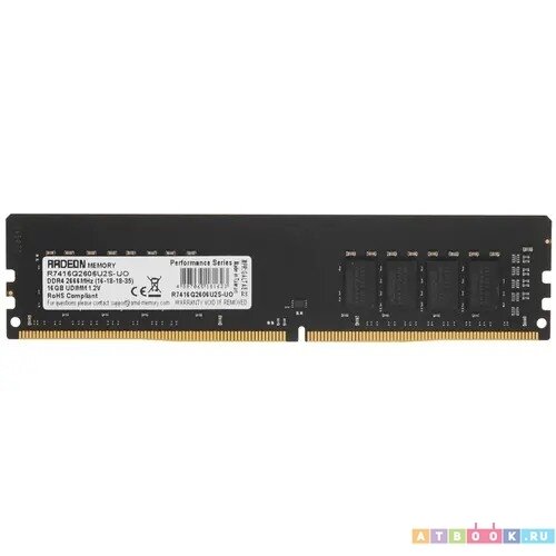 Оперативная память AMD Radeon R7 Performance Series DDR4 - 16GB, 2666 МГц, DIMM, CL16, OEM (r7416g2606u2s-uo)
