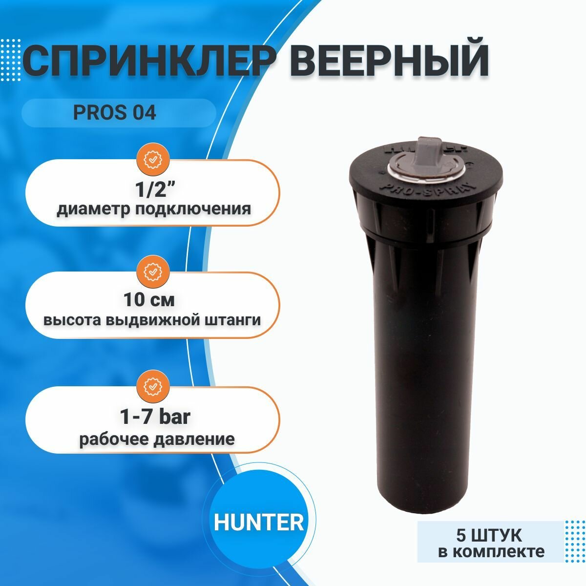 Купить Спринклер дождеватель веерный для автополива (орошения) сада и газона PROS 04 HUNTER, 1/2", 5 шт