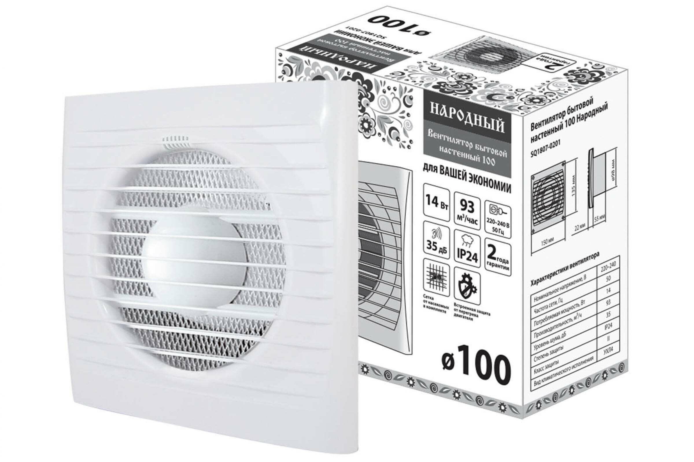 Вентилятор бытовой настенный 100 белый пластик IP24 Народный (1/8)