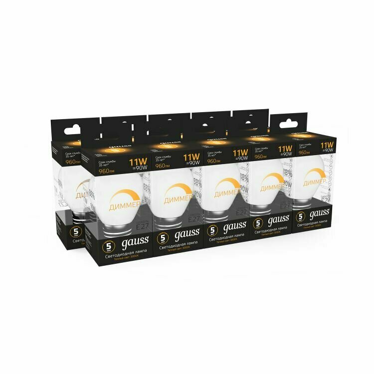 Лампочка светодиодная Е27 A60-dim 11W холодный свет 6500К упаковка 10 шт. Gauss Black