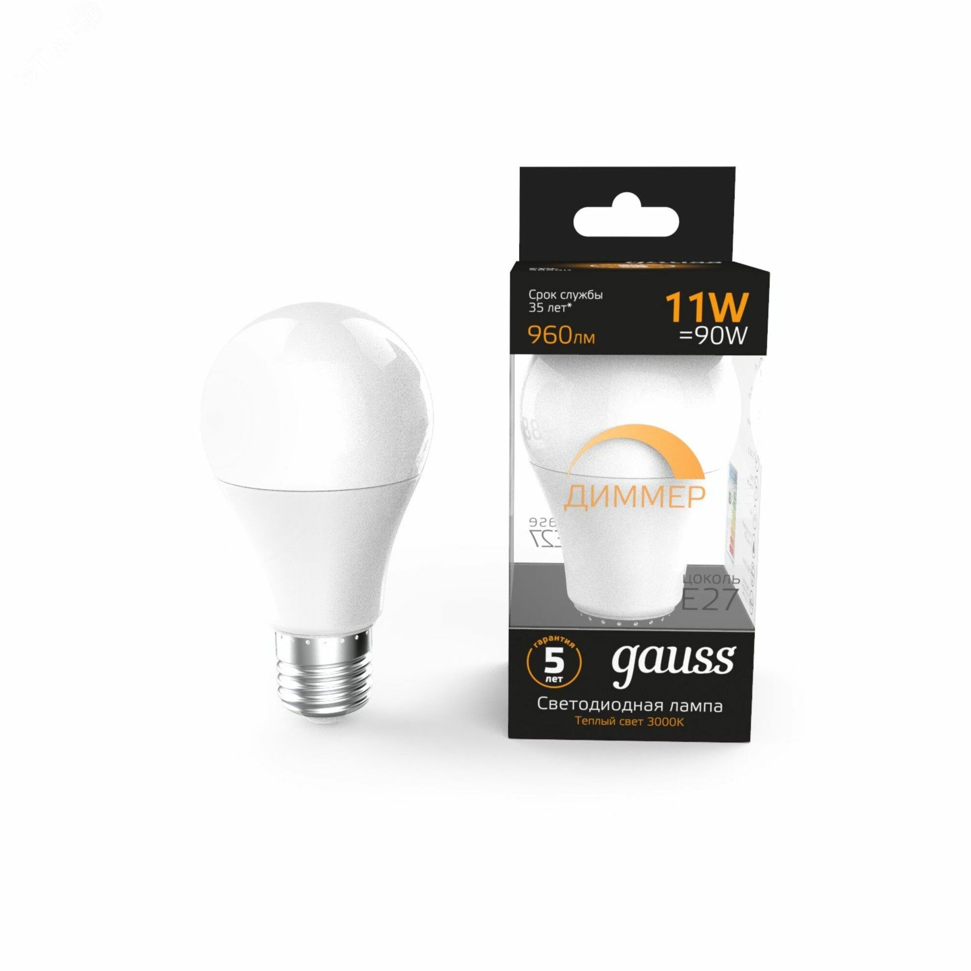 Gauss Лампа A60 11W 960lm 3000К E27 диммируемая LED (арт. 102502111-D)