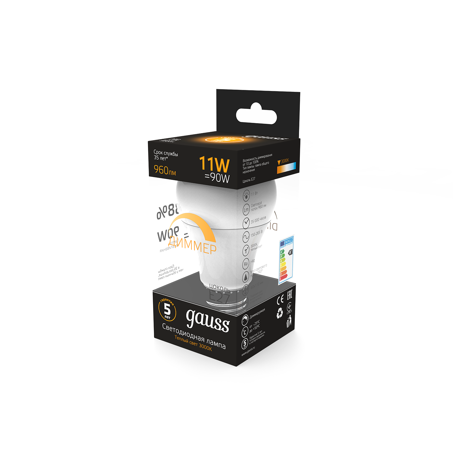 Gauss Лампа LED A60-dim E27 11W 960lm 3000К 102502111-D