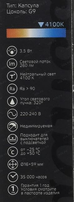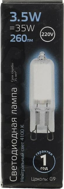 Лампа светодиодная gauss 107809203, G9, 3.5 Вт, 4100 К
