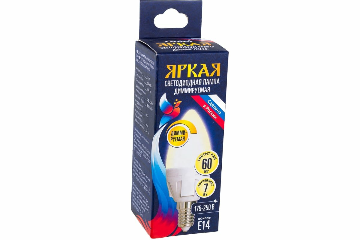 Лампа светодиодная, диммируемая. Форма «свеча», матовая. Серия Яркая. Теплый белый свет (3000K). Картон. ТМ Uniel.