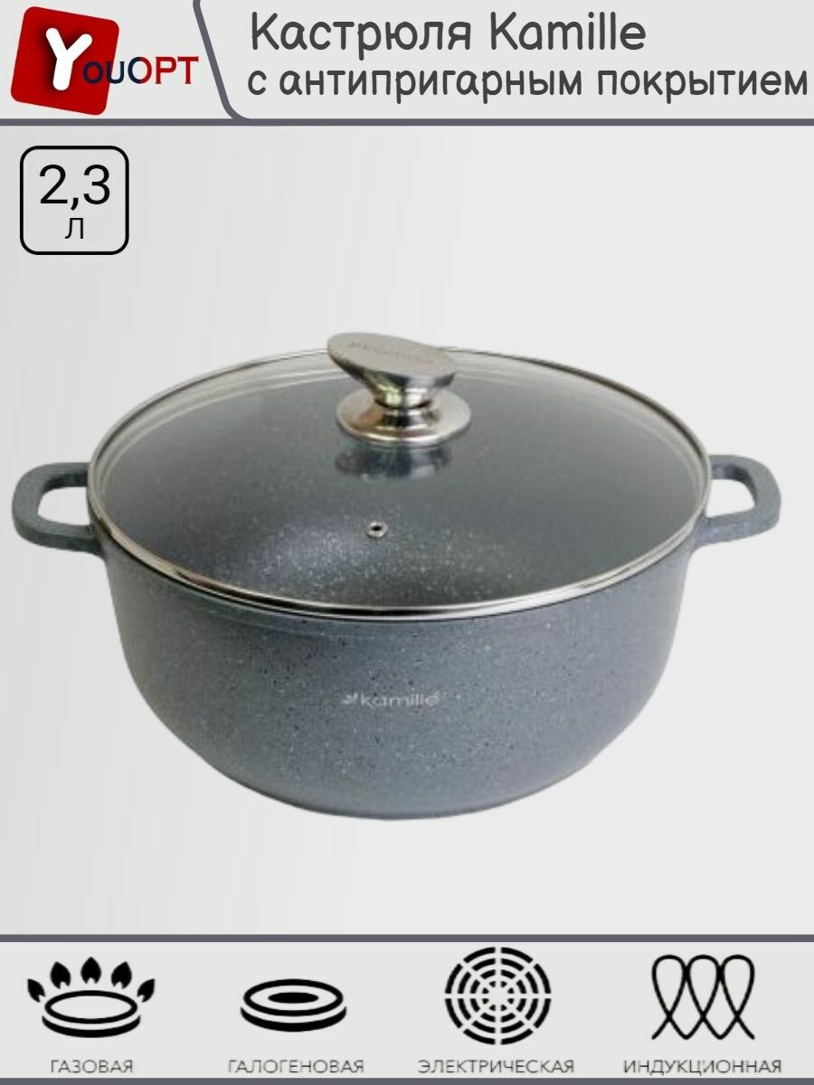 Кастрюля 2,3 л. из литого алюминия Kamille КМ 4424 с мраморным покрытием (2,3 л. / серый)