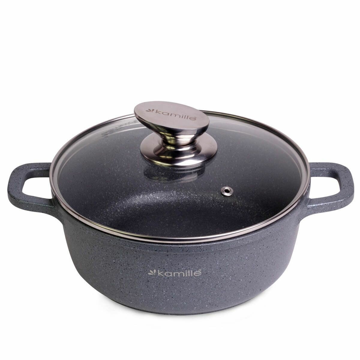 Кастрюля 6,5 л. из литого алюминия Kamille КМ 4426 с мраморным покрытием (6,5 л. / серый)