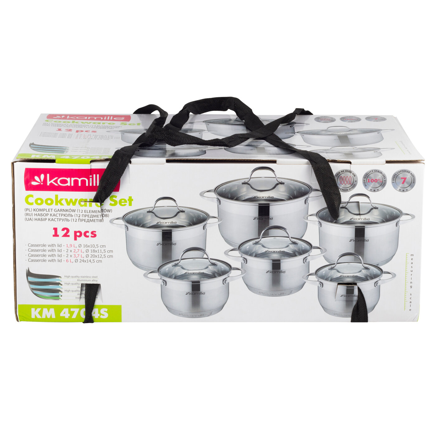 Набор кастрюль 12 предметов из нержавеющей стали Kamille KM-4704S (1,8 л; 2х2,3 л; 2х3,3 л; 5,8 л. 7-слойное дно) (2)