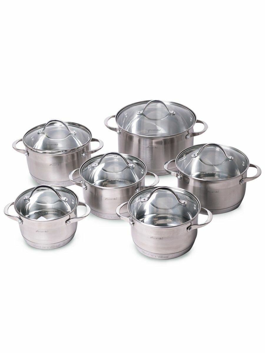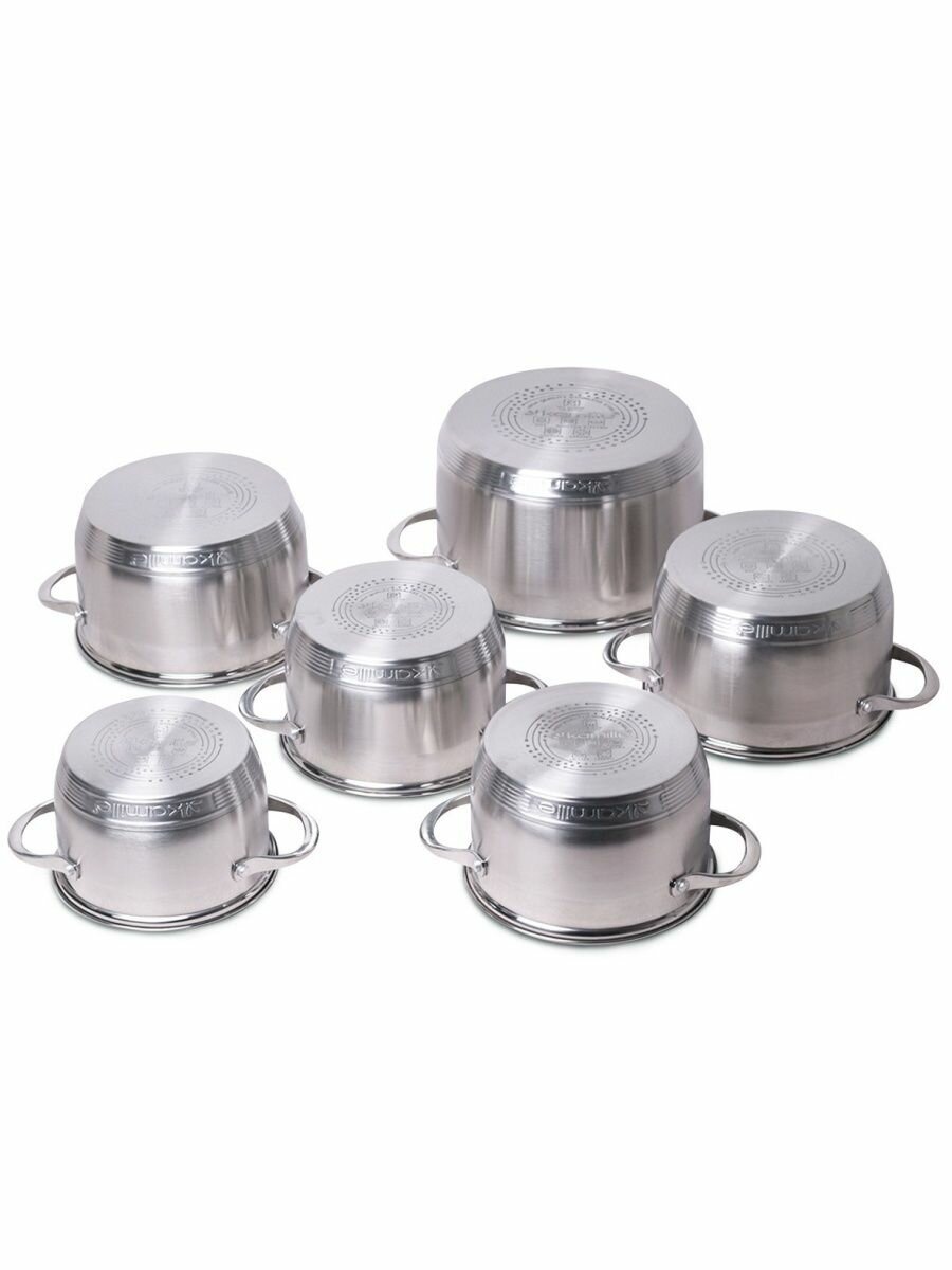 Купить Набор кастрюль 12 предметов (1.8л, 2*2.3л, 2*3.3л, 5.8л; 7-слойное дно) из нержавеющей стали