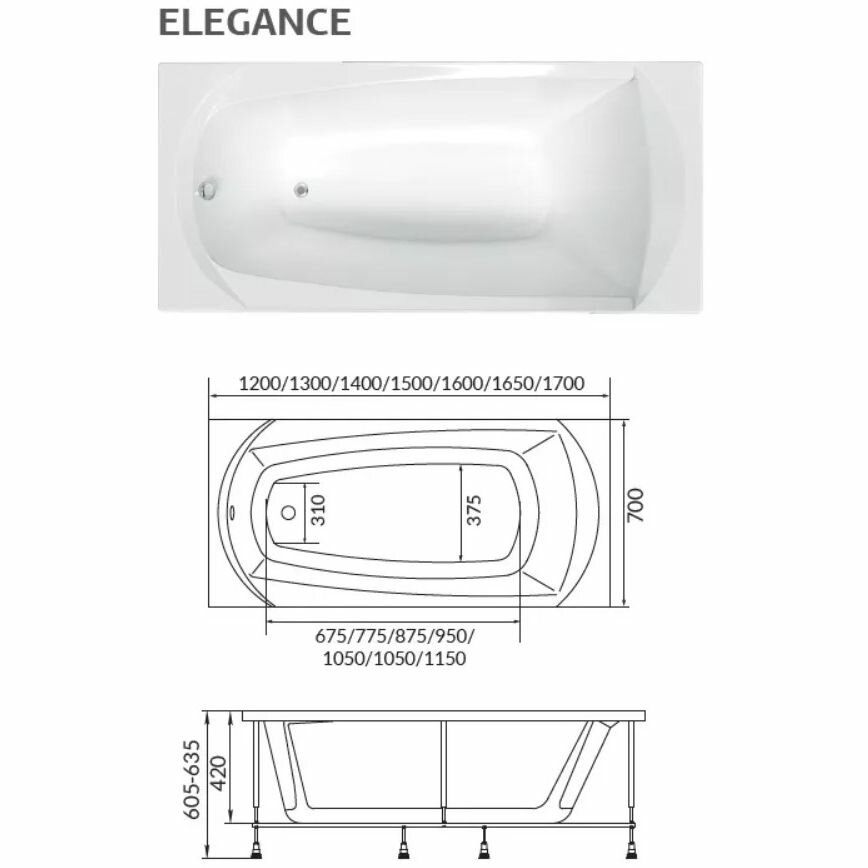 Купить Ванна акриловая прямоугольная 1MarKa Elegance 1300х700 белый (01эл1370)