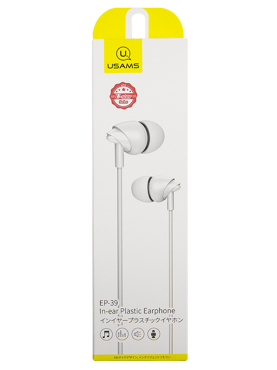 Usams Наушники USAMS EP-39 In-ear Plastic Earphone 1.2M белые HSEP3902 белые